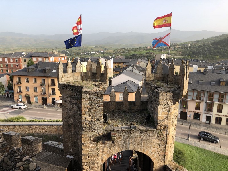 And then comes the visit to the castle, the biggest monument of Ponferrada in a town filled with churches. The castle was originally built by the Knights of Templar, and two palace structures are guarded closely by vast castle walls. I walk the walls slowly, and eventually reach the top of a tower overlooking the town and castle interior. There, I lay down to rest.