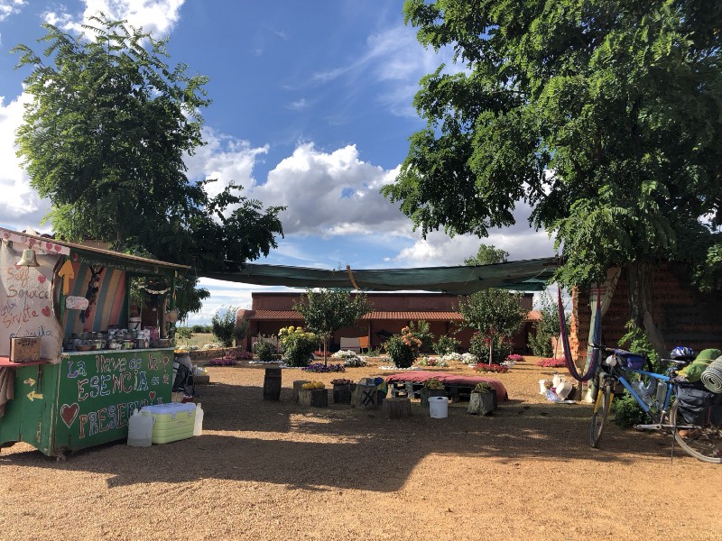 At six, I arrived at San Justo de la Vega, which consisted of a garden and truck with fruits for donation. David’s Place. I saw the Iranian biker Ale there and he smiled. I stopped for one hour and then another, eating watermelon, bread, crackers with jam. I wrote a song.