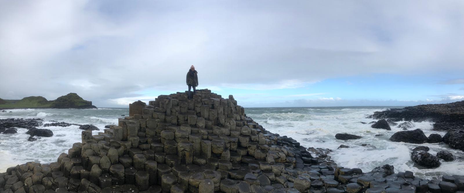 Walking these cliffs, I am at the mercy of the wind. She weaves her own path along the cliffs of the Causeway Coast, taking no notice of me or the other humans trekking towards the stones. She rushes past me, and I imagine her insistent, daring, urging my limbs to follow. I resist, grounding my feet into solid earth. When the wind subsides, I lift my left foot, plant, shift my weight forward. Then my right foot. In one step and then another, I make my way along the cliff path lined by blackberry vines and lavender flowers, down to the basalt stones called the Giant’s Causeway.