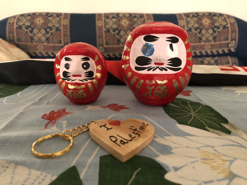 After we shaded in the second eye of the daruma, we bowed to each other until our heads touched. Joann invited the Japanese bell with clear sound, once, twice, then a crescendo of bells, sounding the end of our time together in Palestine. I brought my attention to the second daruma doll on the altar, the one that represents my dream of building strength and joy in Palestinian communities here. Perhaps it is also my journey towards strength and joy in my own heart. I filled in a small sliver.