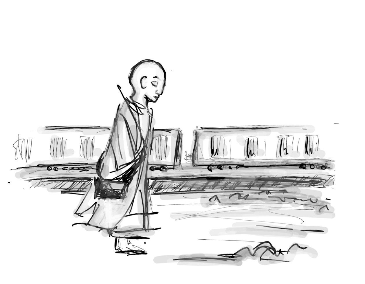 “May I express my deepest gratitude to you?”, the monk asked. He bowed with palms touching, then stood and resumed his path. “Thank you, my friend.” He walked slowly, with conscious steps, towards the open doors of the station and the embrace of his brothers.