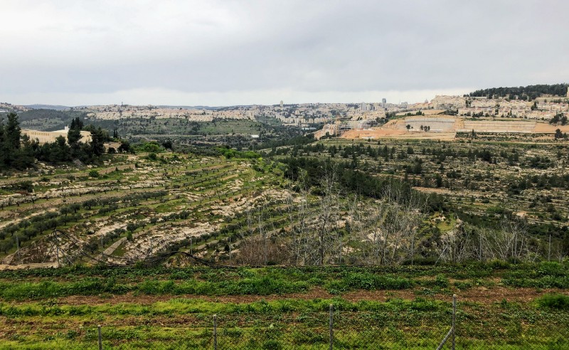 She approached a group of us at a balcony overlooking two ridges separated by the valley below. On the far ridge, an Israeli settlement composed of white houses and red roofs dotted the landscape. On the close ridge, olive trees were being cultivated in terraced agriculture.
