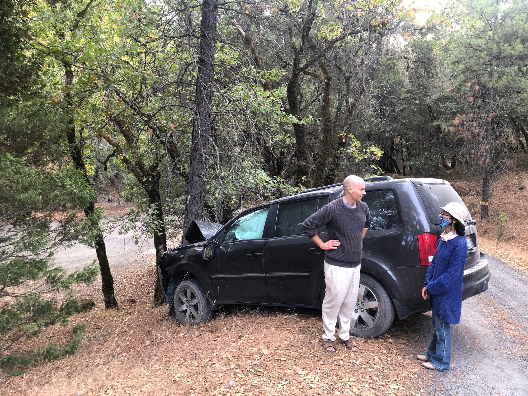 There was so much cognitive dissonance: I was and am living at Mariposa, a safe and welcoming refuge, and my car was clearly wrecked. I was in a survival state, defenses down. How could some person or people make a decision to cause further harm? I feel sad and angry at the very thought that others might be out to cause harm after a severe car accident.
